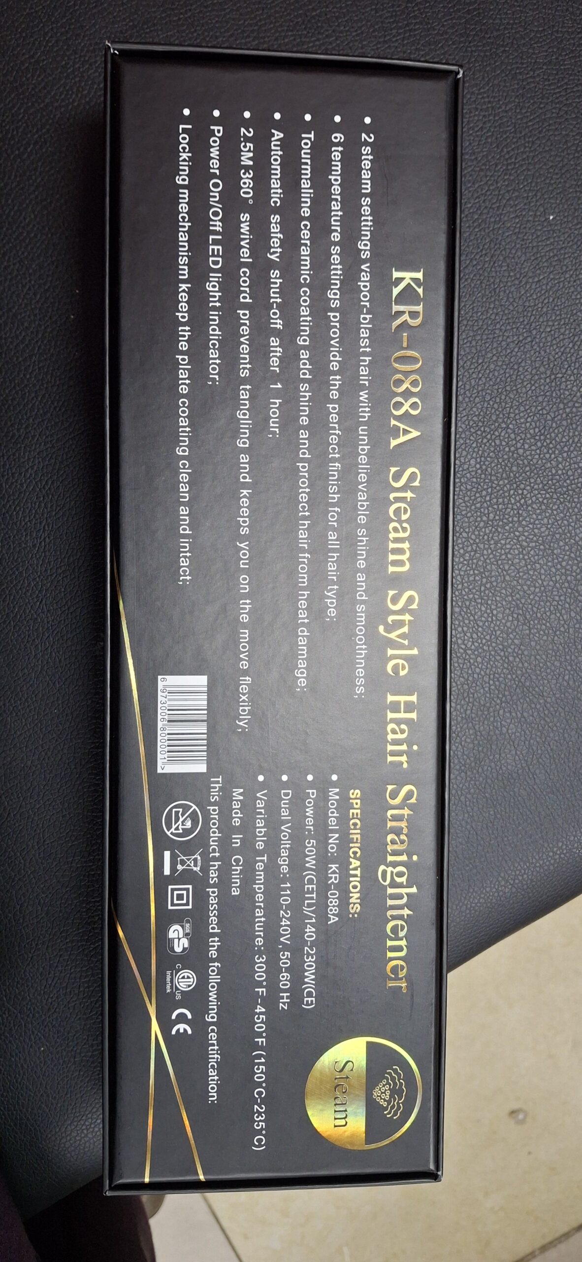 Steam setting vapour-blast hair with unbelievable shine and smooth.Variable temperature 300 degrees.power 50W